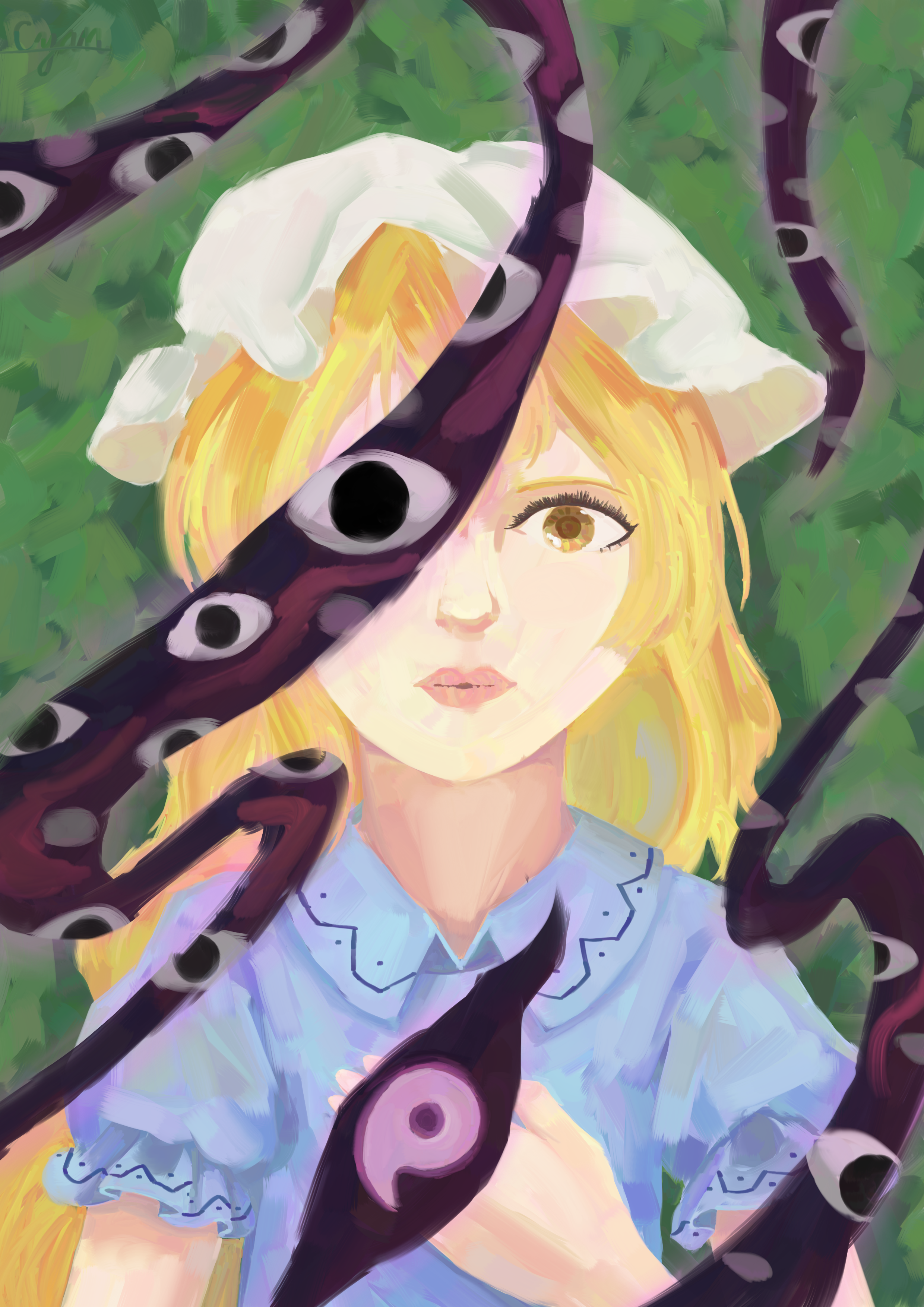 For this one, I wanted to try a more realistic style, especially regarding the face, while also going for a more creepy vibe. I figured Neo-traditionalism of Japan would be a perfect fit for this, which is why I used that specific design.