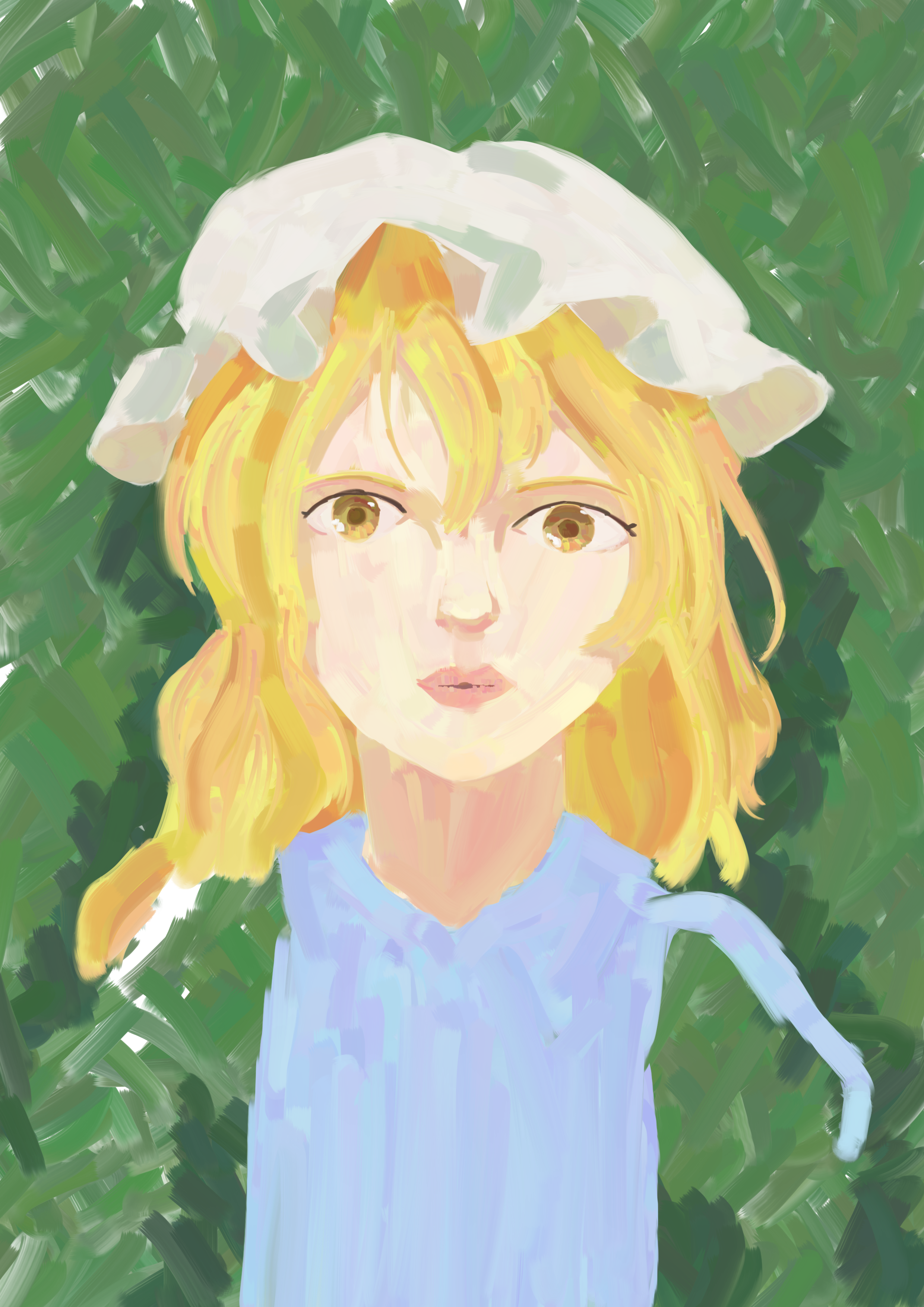 "sanatorium" is a painterly-style portrait of Maribel from Neo-traditionalism of Japan, with gaps tearing through the drawing in streaks.